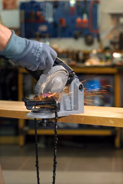 Son moteur atteint 6500 tours par minute, ce qui garantit un affûtage rapide, précis et homogène. La machine s’adapte à une large gamme de chaînes : 1/4″, .325″, 3/8″, 3/8″ Low Profile et .404″. Cette polyvalence permet de traiter aussi bien les chaînes de tronçonneuses d’élagage que celles destinées aux travaux forestiers plus exigeants.