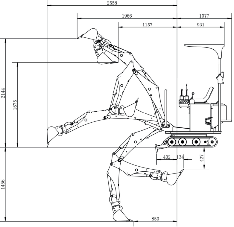 La superstructure pivotante à 360° et la profondeur de fouille de 1456 mm permettent un travail précis et efficace sur les chantiers de terrassement, tranchées ou nivellement.