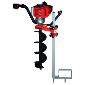 La tarière BF37 / BF41 allie puissance et sécurité pour les travaux exigeants nécessitant deux opérateurs. Le moteur thermique 2 temps 55 cm³ et le réducteur planétaire double étage délivrent un couple maximal de 270 Nm, idéal pour forer dans des sols durs ou caillouteux, ou pour les perçages profonds.