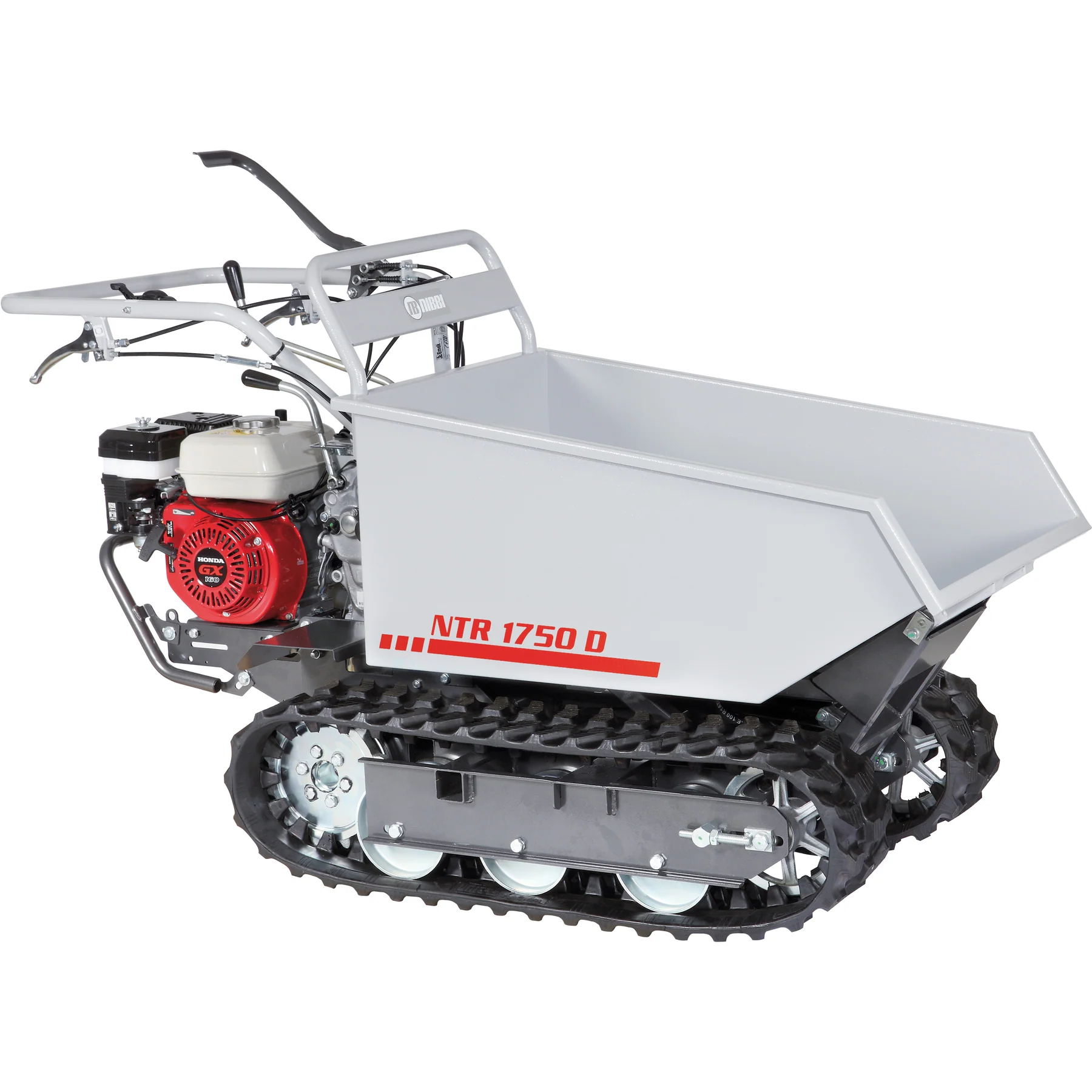 Transporteur NTR 1750 D, moteur HONDA 4,8 ch, benne Dumper hydraulique 550 kg, chenilles larges, idéal terrains pentus et usage professionnel.
