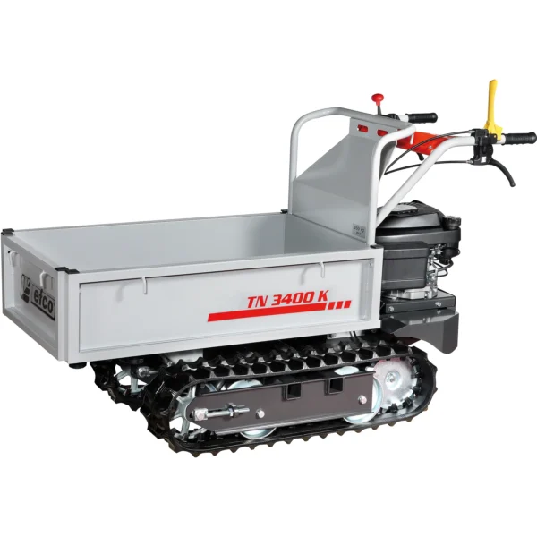 Transporteur TN 3400 K, moteur EMAK 3,9 ch, benne basculante 340 kg, plateau extensible, maniable et idéal pour jardin et chantier.