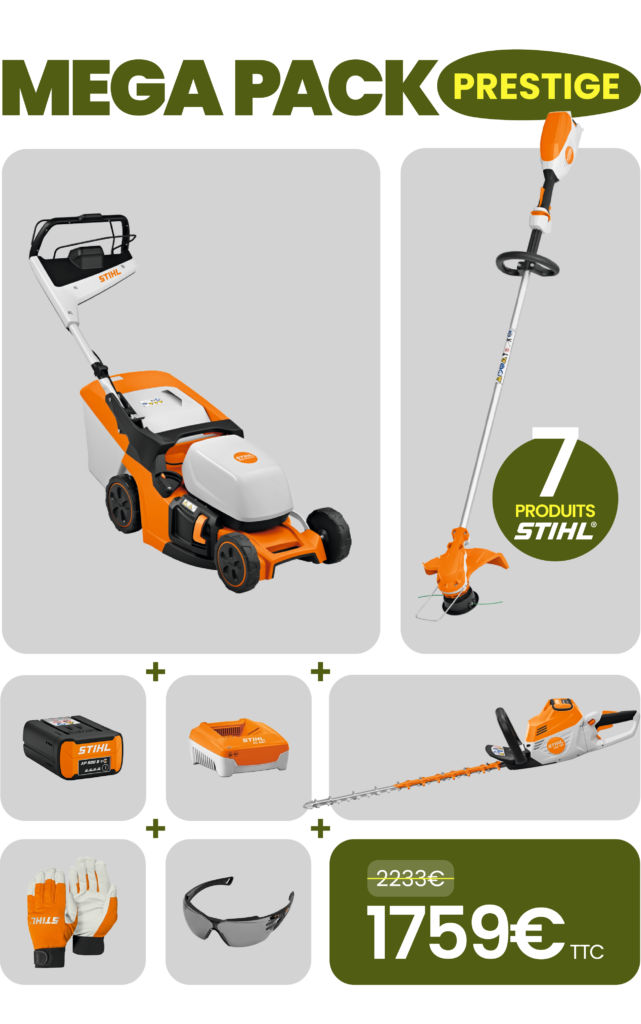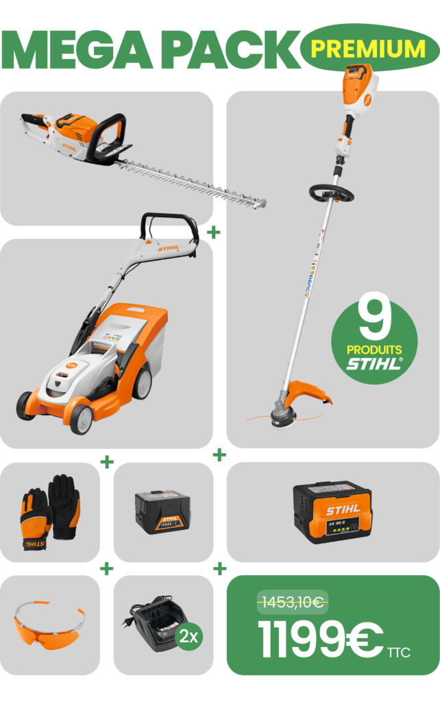 Le MEGA PACK “Premium” est conçu pour ceux qui veulent gagner en performance et en autonomie. Avec 9 produits STIHL, dont deux batteries et deux chargeurs, il permet d’enchaîner les travaux sans interruption.