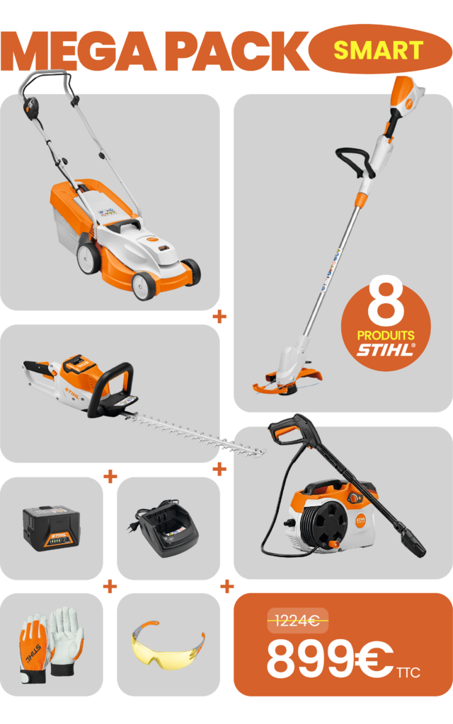 Le MEGA PACK “Smart” est la solution idéale pour s’équiper au complet sans compromis sur la qualité. Avec ses 8 produits STIHL, il rassemble tous les indispensables pour tondre, couper, tailler et nettoyer efficacement votre jardin.